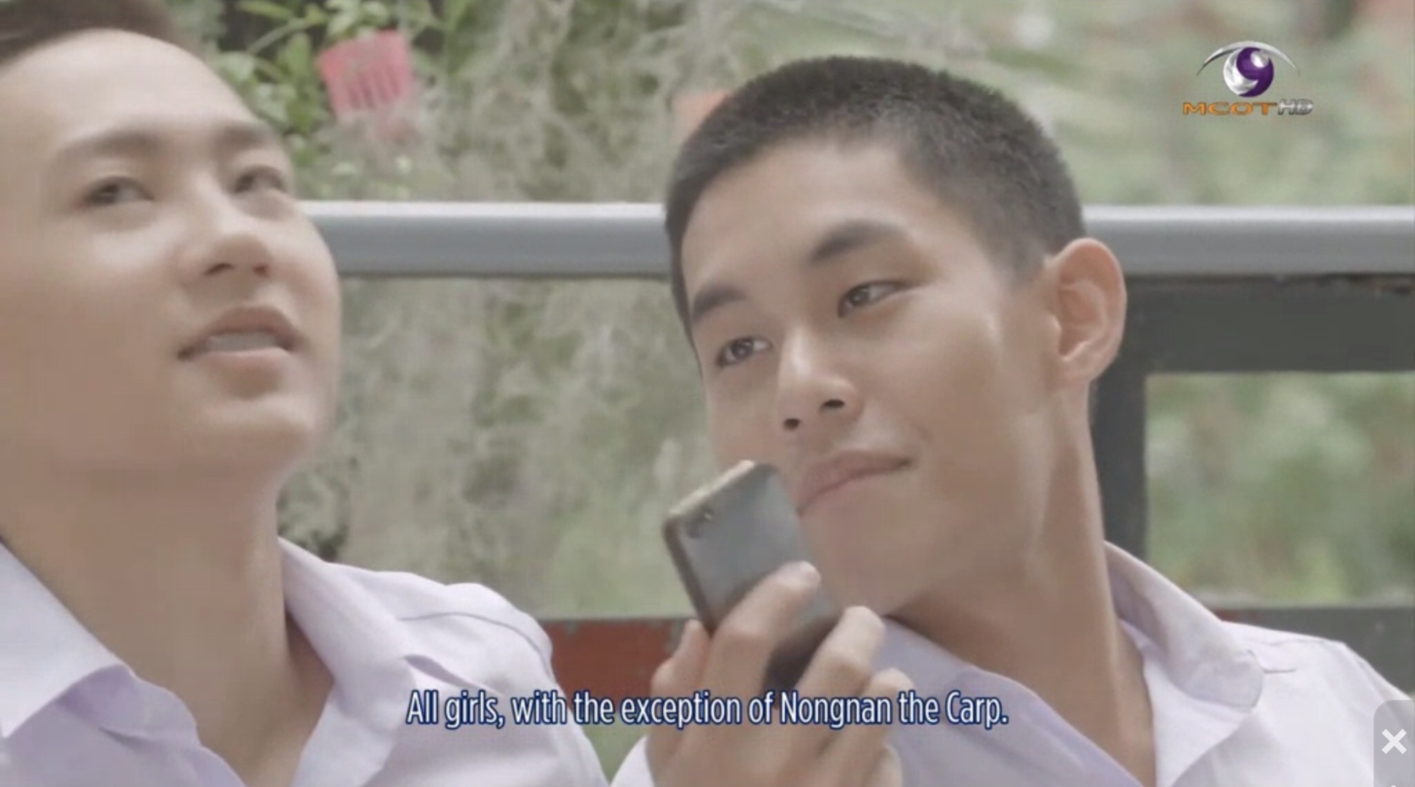 Noh and Ohm play soccer and having lost, go to the bleachers for some refreshments. Yuri phones Noh and he doesn’t answer. She then phones Ohm who makes Noh speak with Yuri. Yuri invites Noh out after school and he accepts. Phun shows up and calls Noh “Babe” which Noh doesn’t like. Ohm mocks them a little and leaves with two underclassmen so that the boys can be alone on the bleachers. Phun and Noh discuss what terms of endearment Phun can use for Noh. Phun asks Noh if he’s free that evening. Noh says that he has plans and jokes that Phun will need to schedule with him if he wants to see him. Phun says that he will make an appointment that will last as long as Noh lives and into the next life. Noh jokes that he’d prefer that Phun let him rest in the next life.