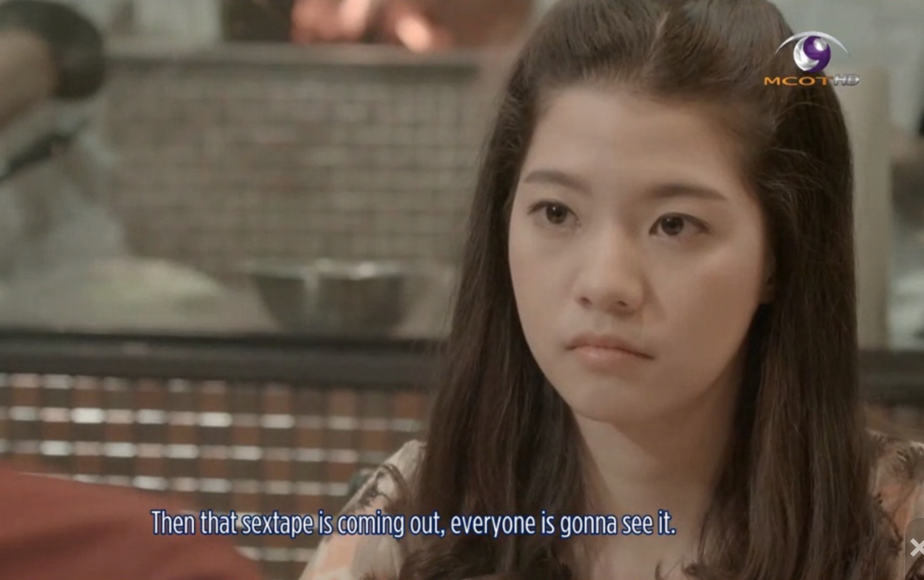 Phun calls Aim to ask her if she loves him. She says she does and Phun responds that he still loves her. Aim puts down the phone. She is actually in a restaurant with Bomb. He asks her if she is choosing Phun. He wants to know why and threatens to release the sex video if she doesn’t choose him. Aim leaves. Bomb follows her and they continue to argue outside the restaurant. Mo comes across them and after Bomb grabs Aim’s wrist, she intervenes, sending Bomb away. She walks Aim back to her condo. She assumes that Bomb is just some guy who has come on to Aim too strongly. As Aim waits for the elevator, she makes eye contact with another boy and it looks like they are going to be leaving the elevator together.