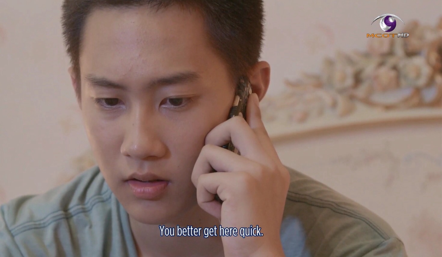 At the Phumipat mansion, Phun and Noh are preparing for bed. Noh tries to get the bird in Phun’s room to talk, but Phun informs Noh that it is a dove and doesn’t speak. He asks Phun if he’s planning to keep it as a pet, but Phun hasn’t decided. He doesn’t want to release it as it is injured and life would be hard for it if he let it out. Noh tries to come up with a good name for the bird and settles on Mrs. Chomchai. He feels sorry for the bird since it should be free and Phun doesn’t spend time with it. This reminds Phun of Aim and the conversation they had at Hua Hin about Phun being too busy to make time for her. The boys sleep. When Phun wakes up the next morning, he releases the bird before Noh awakens.