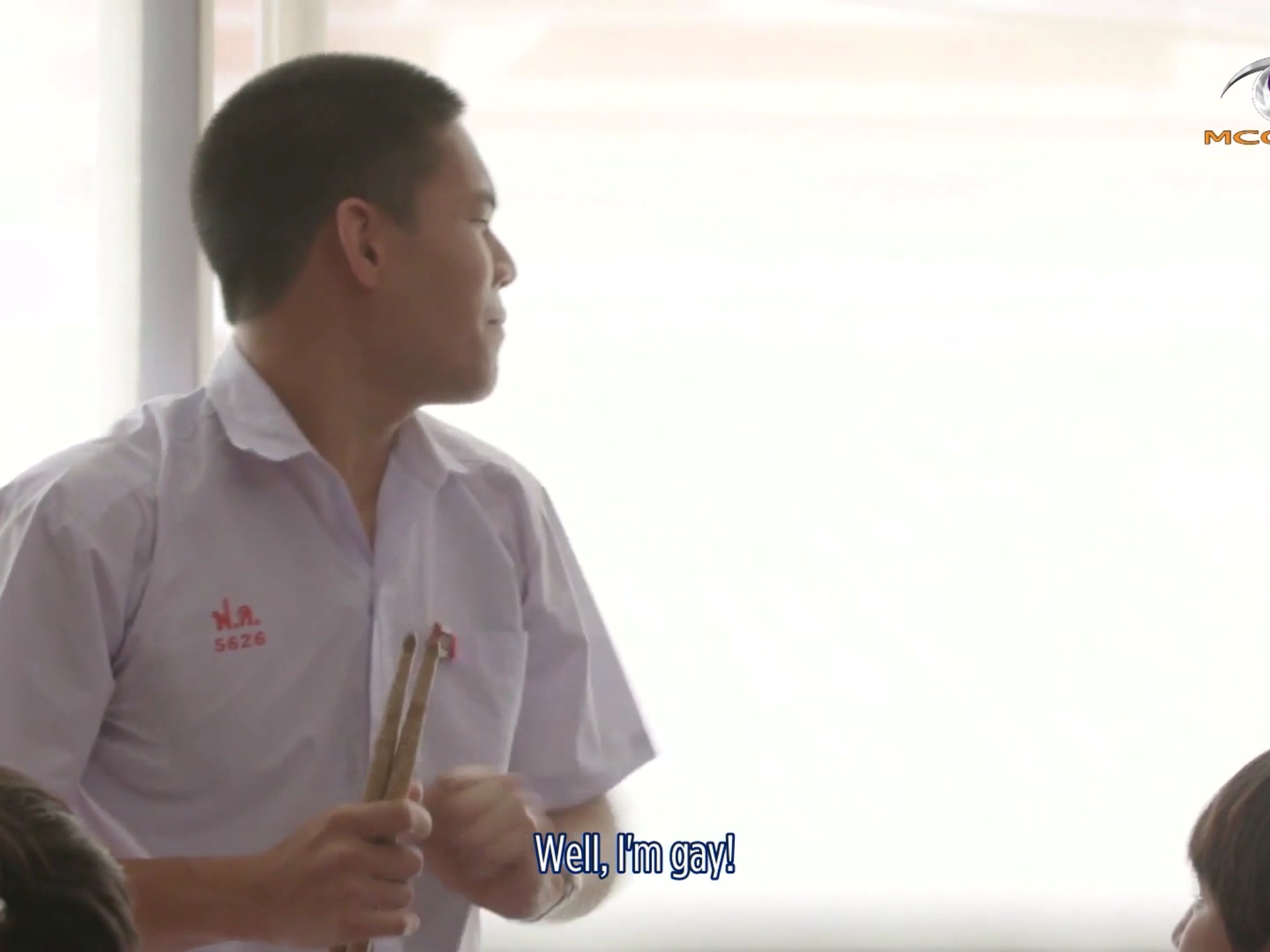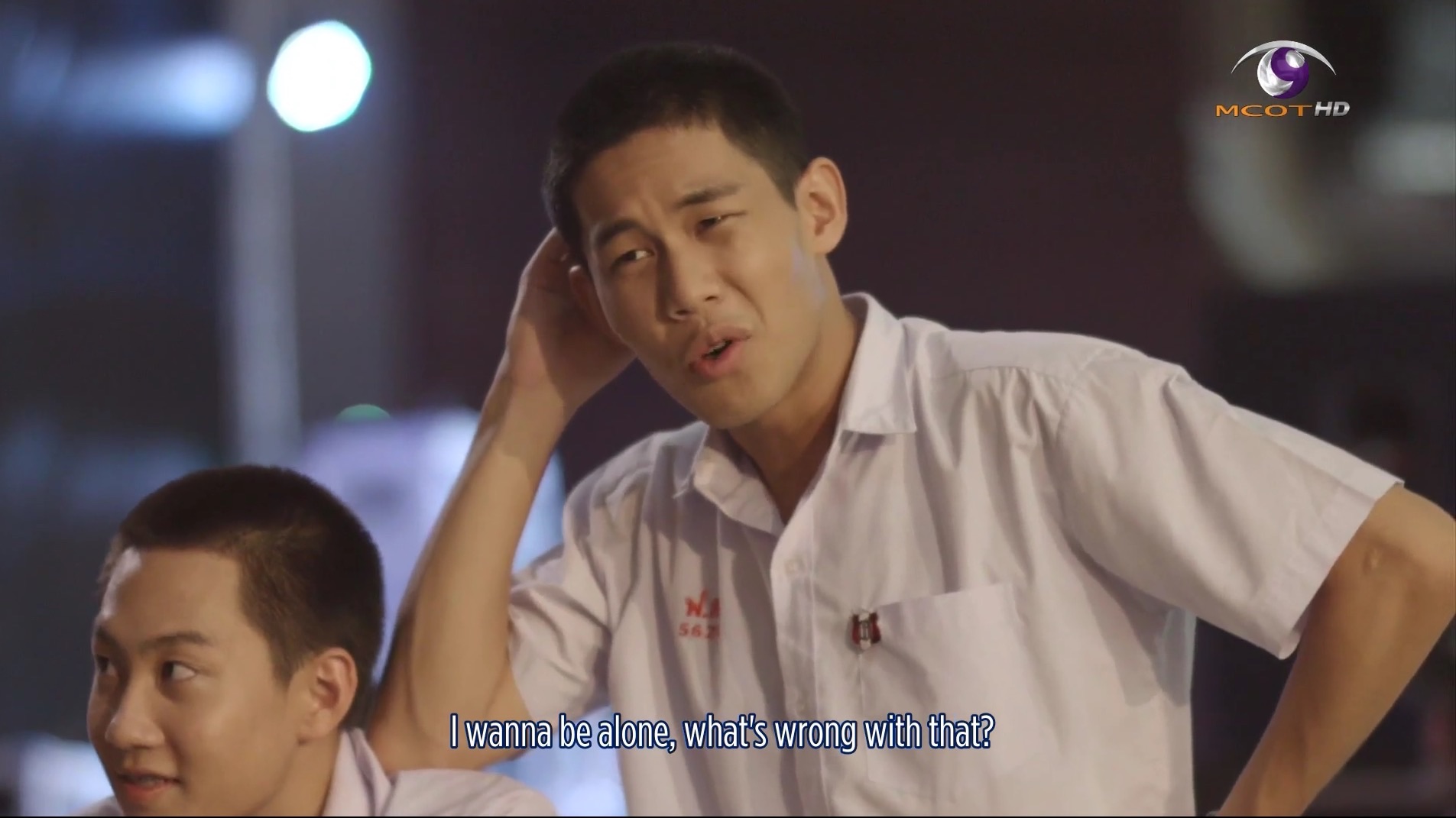 The band seems to be set up properly and is waiting to go on after the convent dance team finishes their award winning routine. Ngoi appears to be infatuated with Liew and Per is enchanted by Lok. Ohm finally arrives with Film. Mick asks where Ohm has been, which makes Film upset since no one seems concerned that he is late. Ohm claims to have been stuck in traffic (although the convent is just across the street?!!!) and then scoffs at Film for being jealous that Mick is concerned about him. Film parries back with a question about whether Mick and Ohm are gay for each other, which Ohm flatly denies. Film asks Ohm why he doesn’t have a girlfriend, which reminds Per that Mark made fun of him for potentially secretly liking Win. Ohm responds that he just wants to be by himself. Noh brings up the fact that nong Nan is staring at Ohm and Mick asks about her, but doesn’t get an answer. Ohm asks Noh about Yuri, and Noh responds that she’s selling pudding, which makes Knott ask some crude questions about the quality of Yuri’s puddings (which, even as euphuisms for breasts go, is quite lame).